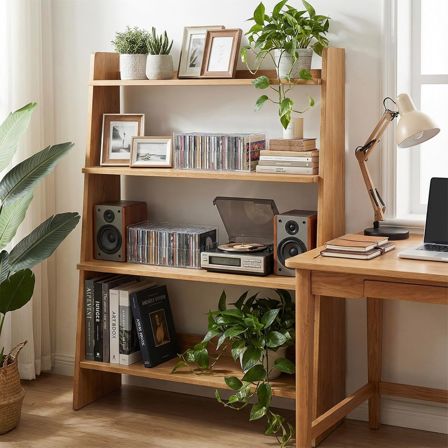 Modern Modular Natural Wood Desktop Shelves and Organizer Rack