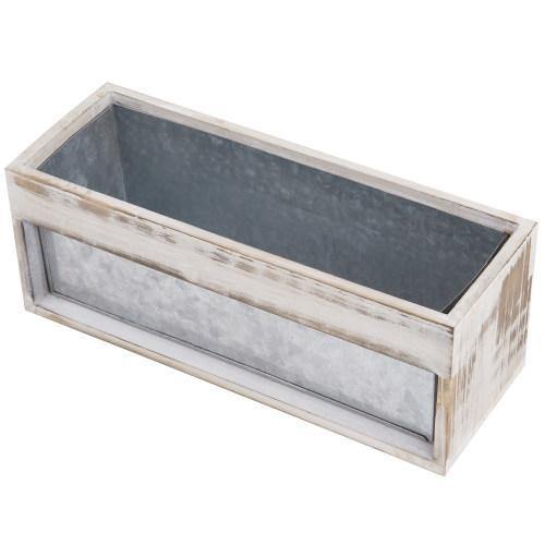 - 12 inch wood and galvanized metal decorative planter box with shabby whitewashed finish